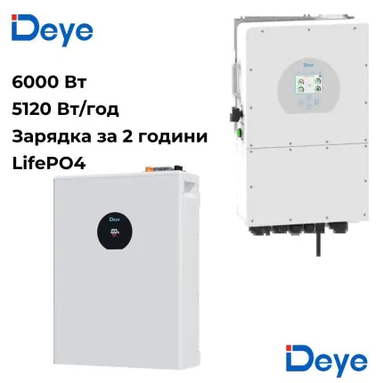 ДБЖ для дому Deye SUN-6K-SG05LP1-EU 6кВ + Deye SE-F5 Pro-C LiFePO4 5,12 кВт/год