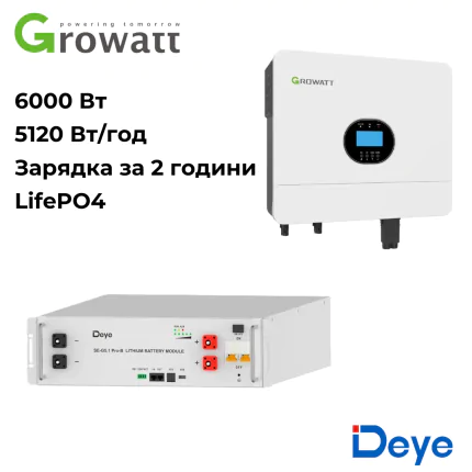 ДБЖ для дому Growatt SPF 6000 ES Plus 6кВт + Pylontech US3000C LifePO4 3,55кВт/год