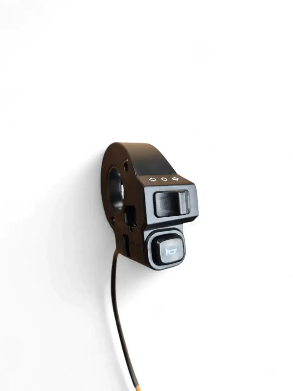 Оригінальний перемикач поворотів і звукового сигналу для електросамокатів KuKirin G2, G3 та G4 — важливий електронний компонент, що забезпечує керування лівим і правим покажчиками поворотів та звуковим сигналом (клаксоном). Ця деталь відповідає за безпеку на дорозі та повноцінну роботу системи освітлення самоката.