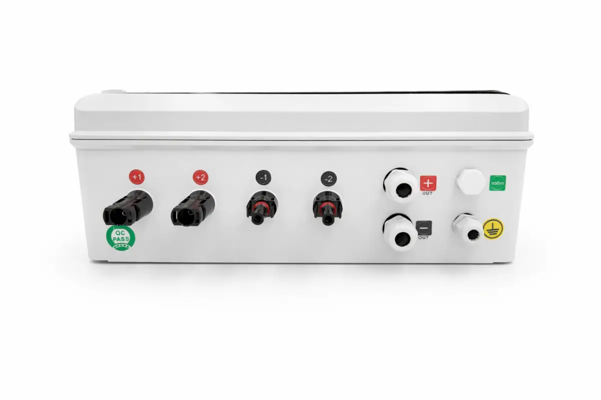 PV Combiner Box ARPVB-2/1 ISO/32A/DC1000V — це компактний розподільчий бокс для сонячних електростанцій, призначений для об’єднання двох DC-стрінгів фотоелектричних панелей в один вихід із подальшим підключенням до інвертора. Такий пристрій спрощує організацію сонячної системи, робить підключення більш зручним і допомагає забезпечити надійну та безпечну роботу всієї станції.