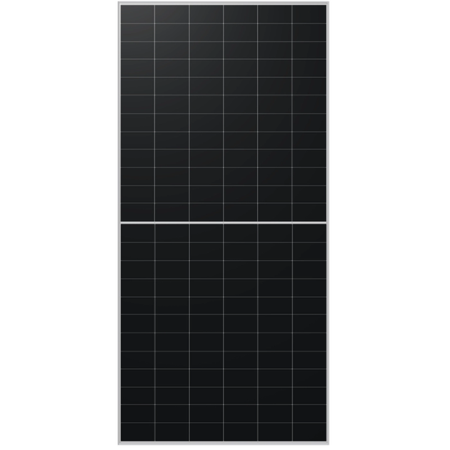 Сонячна панель LONGi LR7-72HVH-645M — високоефективний монокристалічний модуль потужністю 645 Вт з технологією n-type (HPBC / HPDC). Модуль має 144 половинчасті елементи (Half-Cell), забезпечує ККД близько 23,9 %, працює в широкому температурному діапазоні від −40 °C до +85 °C. Напруга в точці максимальної потужності ~ 44,46 В, струм ~ 14,51 А; напруга холостого ходу ~ 53,80 В, короткого замикання ~ 15,21 А. Панель здатна витримувати високі системні напруги до 1500 В, мають захист з’єднувальної коробки IP68 і стійкий алюмінієвий анодований каркас.