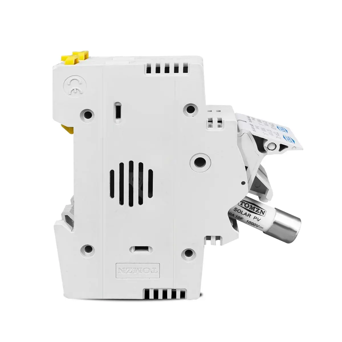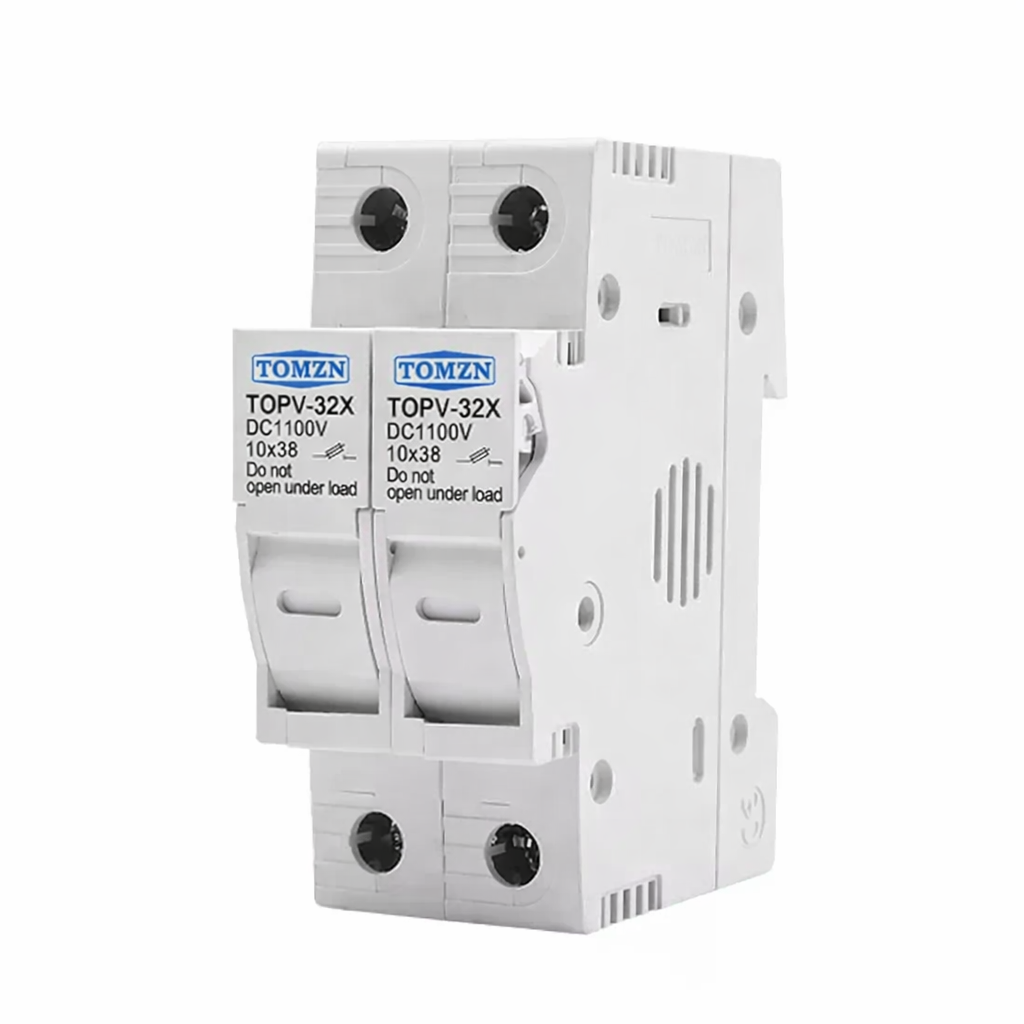 Тримач запобіжників TOMZN TOPV-32 — це надійний елемент захисту для фотоелектричних систем, призначений для встановлення на DIN-рейку. Пристрій комплектується двома PV запобіжниками по 20А, які використовуються для захисту кабелів та сонячних модулів від перевантаження і короткого замикання в системах постійного струму.